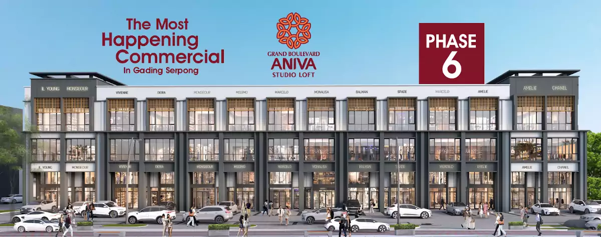 Grand Boulevard Aniva Studio Loft by Paramount Land! Komersial Terlaris di Jantung Kota Gading Serpong, Studio Loft 3-4 Lantai Hadap Jalan Utama Harga Mulai 6.3 M-an. Lokasi strategis di CBD Ramai Dikelilingi Rumah, Office, dan lainnya.